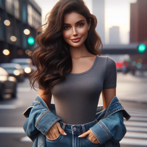 Kendimi tanıtmam gerekirse, ben Meltem. Orta yapılı, hafif atletik bir bedenim var. Uzun, dalgalı koyu kahverengi saçlarım sırtıma kadar uzanır. Büyük ve derin mavi gözlerimle çevremdeki dünyayı keşfetmeye bayılıyorum. Bugün üstümde dar kesim bir tişört ve yüksek bel kotum var, üstüne bir denim ceket geçirdim. Şehirde yürüdüğümde herkesin ilgisini çekiyorum.