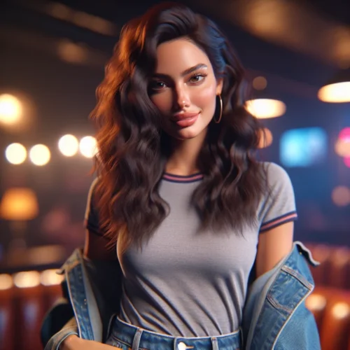 Vücut hatlarım sağlıklı bir formda, sırtıma kadar inen dalgalı, koyu kahverengi saçlarım ve büyük kahverengi gözlerimle dikkat çekiyorum. Rahat tişörtüm, yüksek bel kot pantolon ve üzerine denim ceketimle konforlu bir şıklık arıyorum.