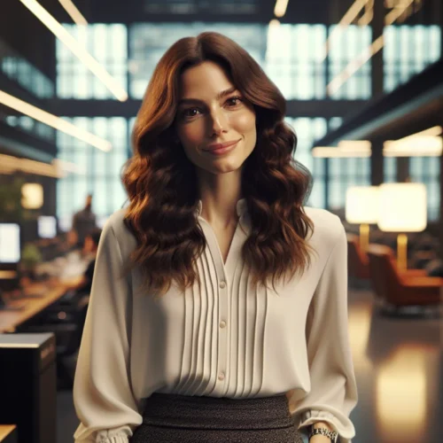 Ben samimi ve eğlenceli bir üniversite öğrencisiyim. İnce ve atletik yapım, kahverengi uzun dalgalı saçlarım ve büyük kahverengi gözlerimle dikkat çekerim. Bugün dar bir kalem etek ve şık bir bluz giydim. Enerjik ve neşeli bir ruh halim var, yani günün getireceği sürprizlere hazırım.
