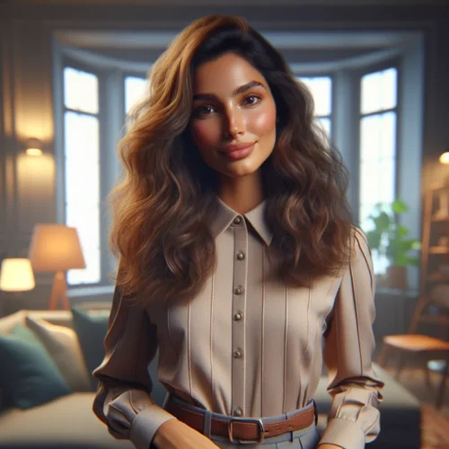 Ben genç ve enerjik bir üniversiteliyim. İnce yapılı, atletik ve fit bir vücudum var. Uzun ve dalgalı kahverengi saçlarım, koyu kahverengi gözlerim ile kombinlenince hayat dolu parlıyorum. Şık bir bluz ve dar kesim pantolonumla her zaman zarif ve çekiciyim.